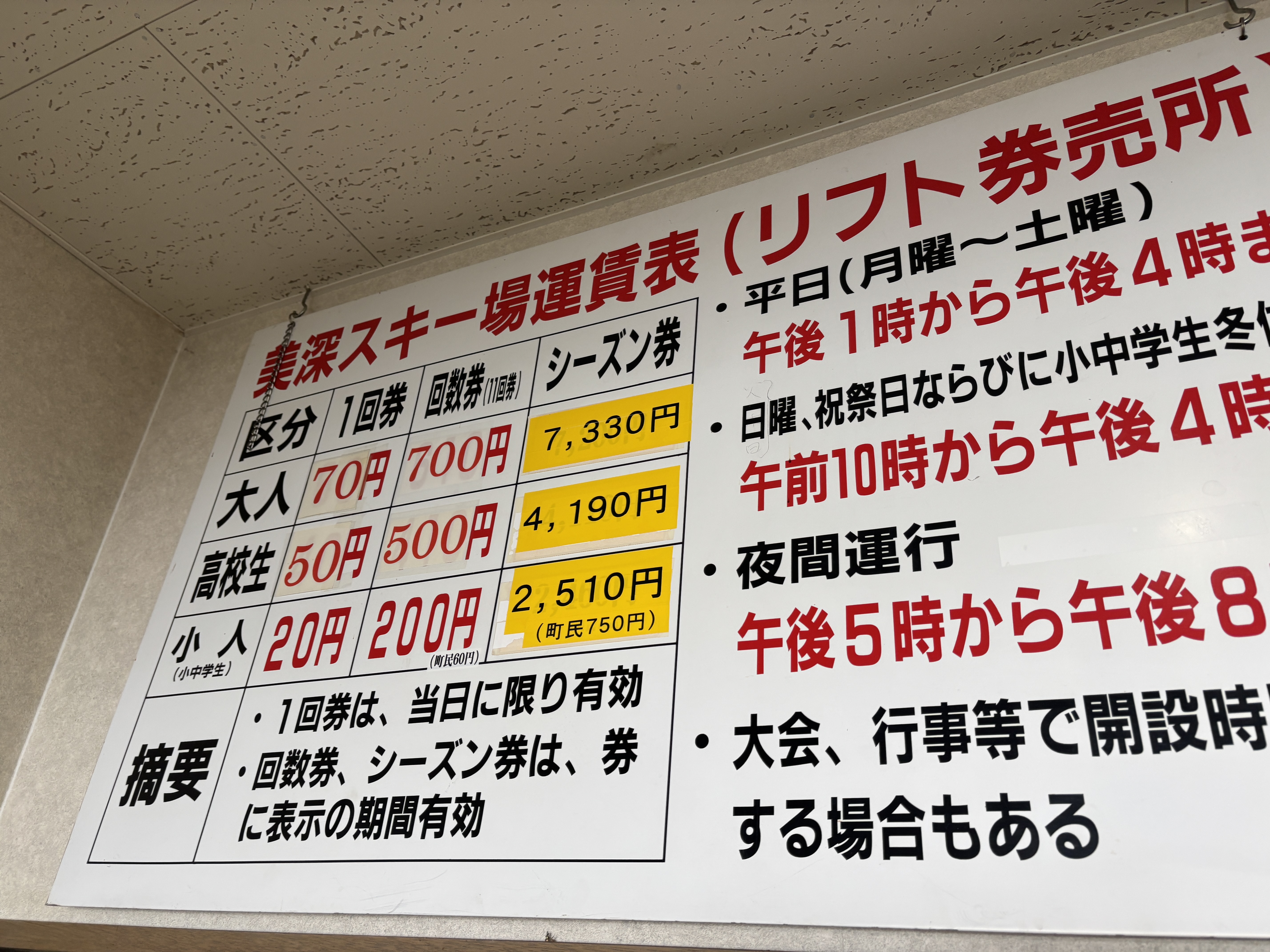 リフト券は、センターハウスで購入できまして。値段はなんと1回80円。自分は回数券を購入して11回滑りましたよ!センターハウスも小さめですが雰囲気はいい感じ。「冬のみんなの運動場」っといった感じの雰囲気がオリジナル。